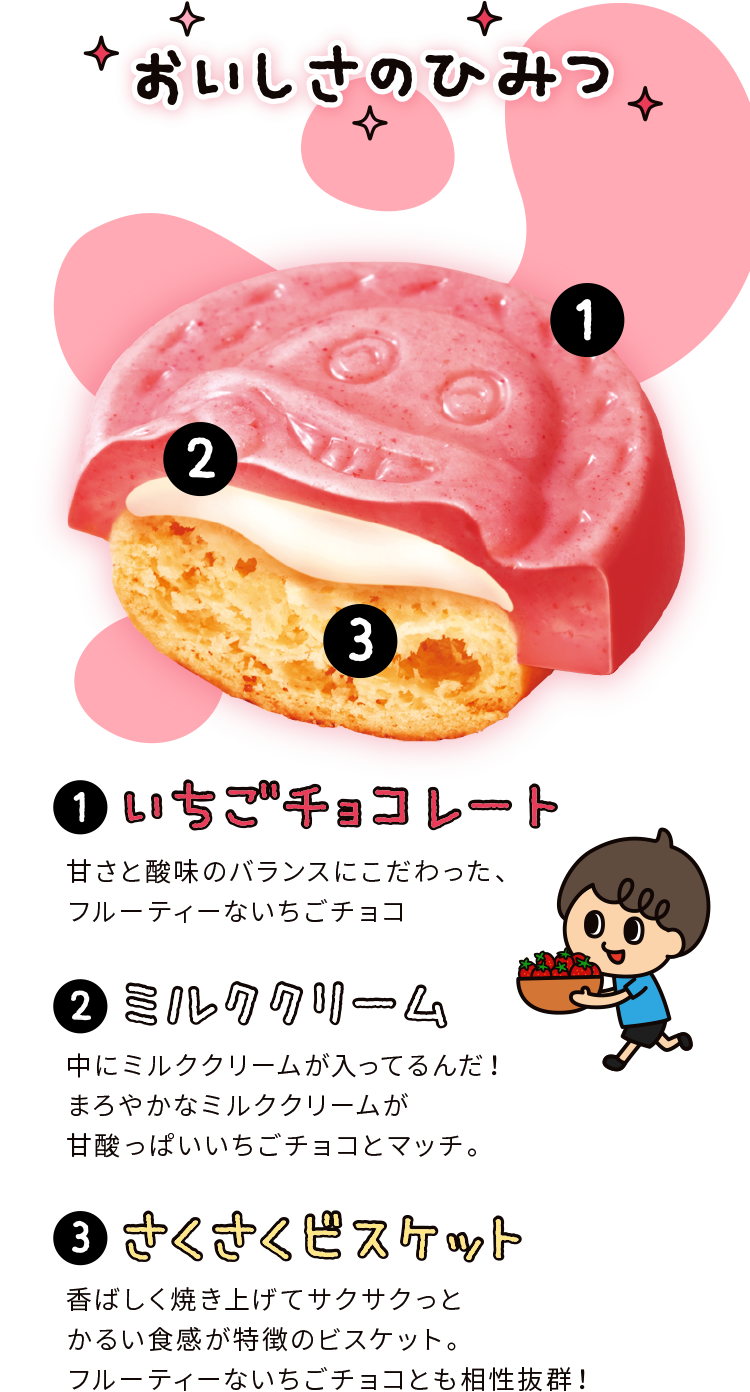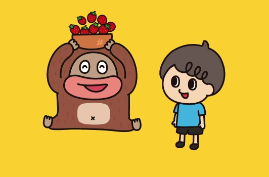 おすチョわけある日のこと、少年はチョコデール山に住むチョコジローにいちごのおすそわけに行きました。