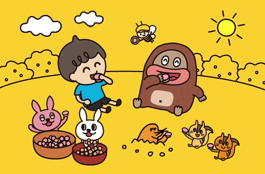 ベリーグッチョ!山の仲間をあつめてみんなで食べてみるとチョってもおいしい!こうして、チョコデール山に新たなフレーバーのチョコが誕生したのです。