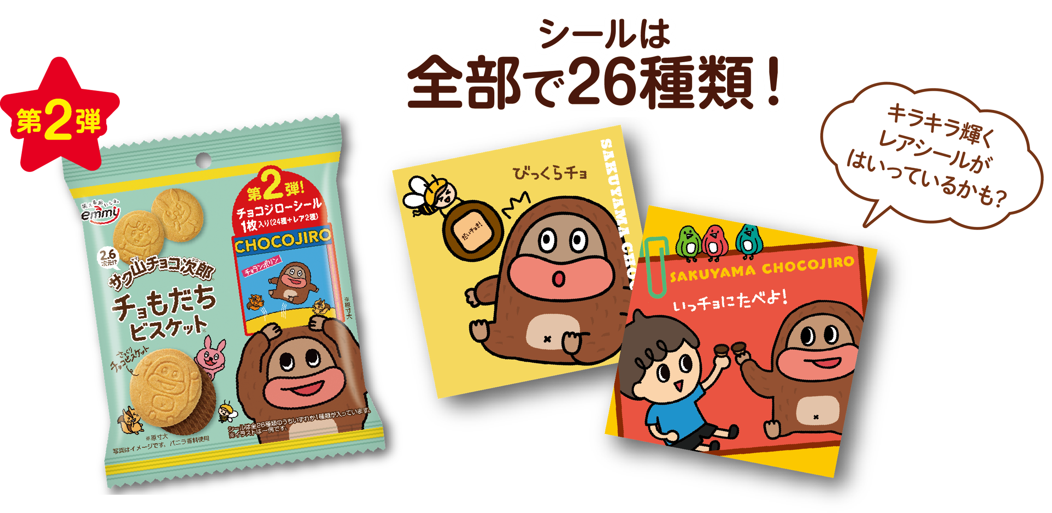 サク山チョコ次郎『チョもだちビスケット』第2弾登場!“集めたくなる”が止まらない、シール26種がフルリニューアル!