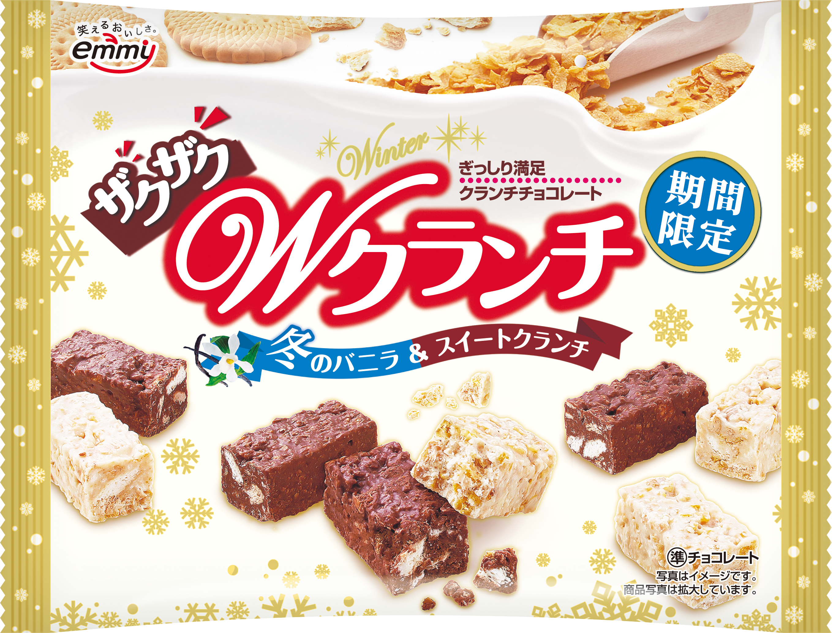 ・コクのある味わい「冬のバニラ味」&定番人気「スイートクランチ」、2種類のクランチチョコレートです。